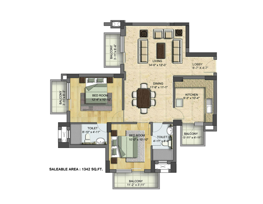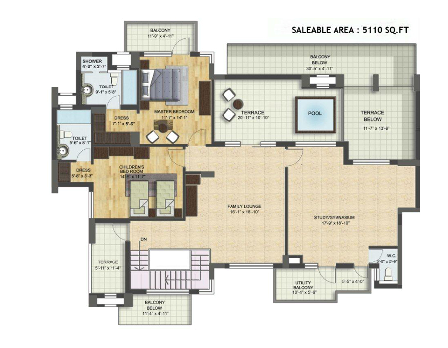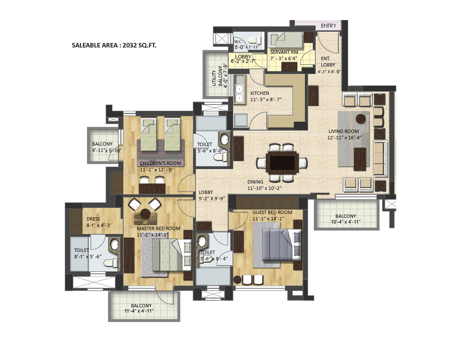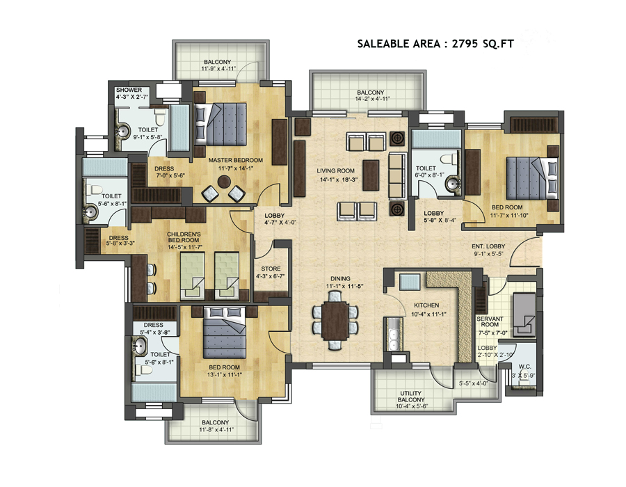 4 BHK + 1 Servant + 4T = 2795 SqFt