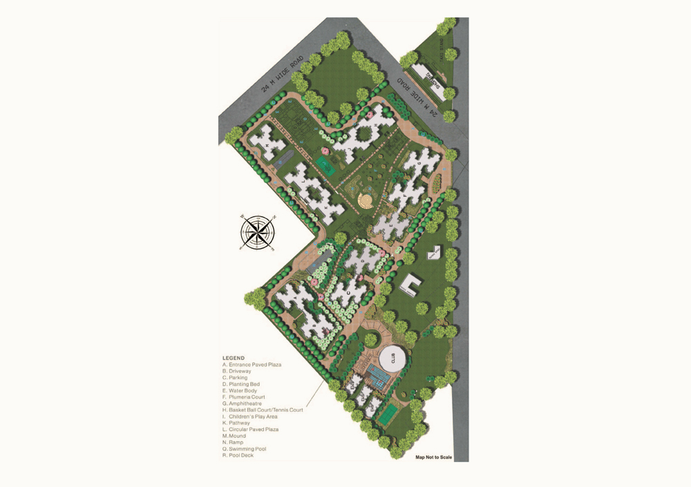 This detailed site plan explains the scope of the project and highlights the layout of its prominent features and facilities.