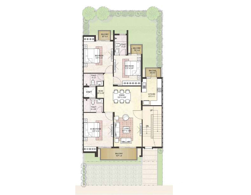 3 BHK + 1 Servant + 3T =350Yd — (1585 SqFt)