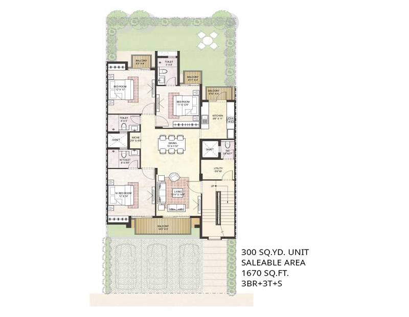 3 BHK + 1 Servant + 3T =300YD — (1670 SqFt)