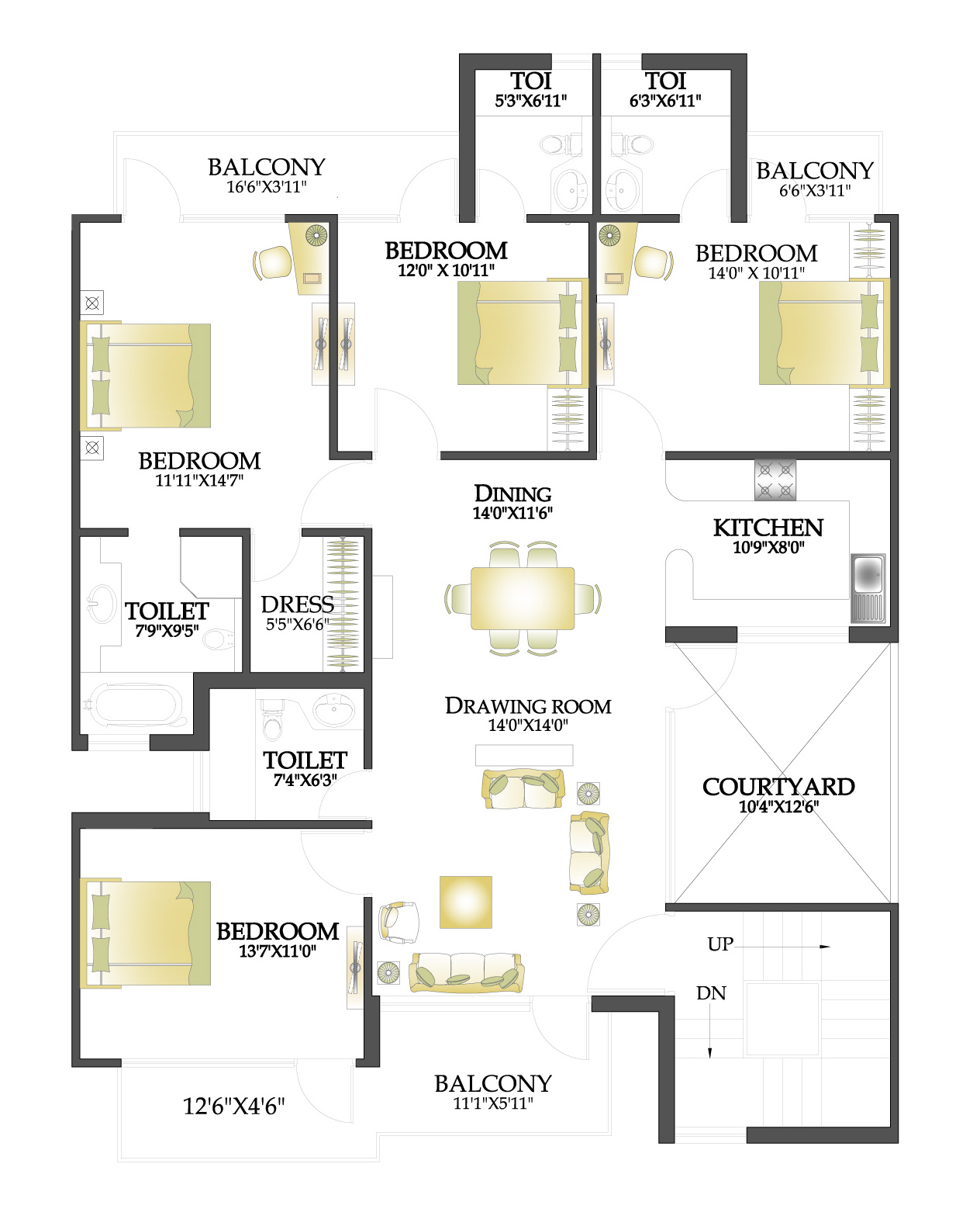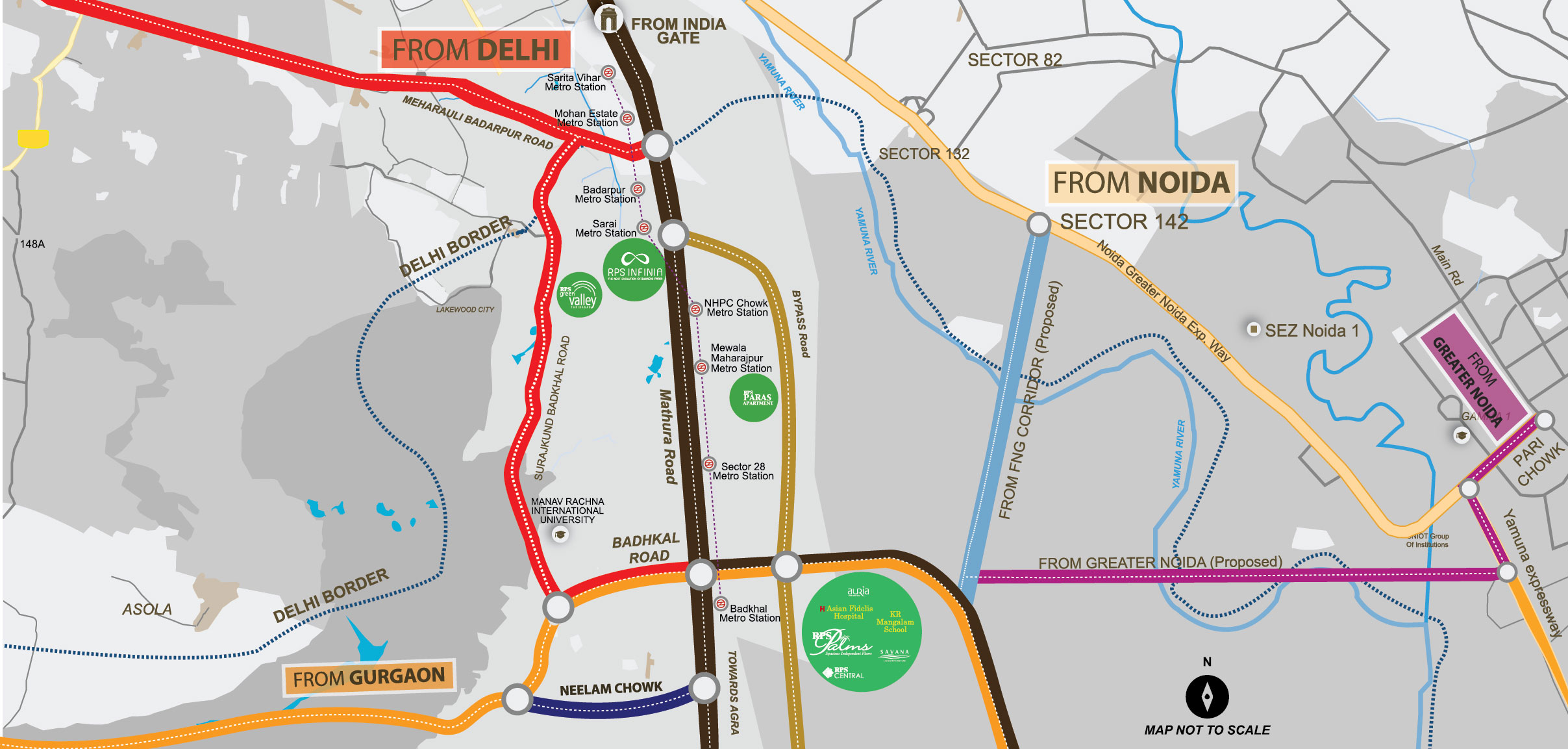 Within the tranquil and extensively developed environs of RPS City rises RPS Palms – a secure and spacious gated complex sprawling in about 20 acres of land housing 456 spacious independent floors built on a variety of plot sizes such as 270, 340, 373, 402, 425 sq. yds.