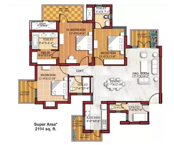3 BHK + 1 Servant + 3T =2194 SqFt