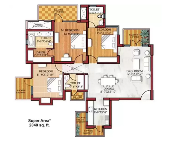 3 BHK + 1 Servant + 3T =2155 SqFt
